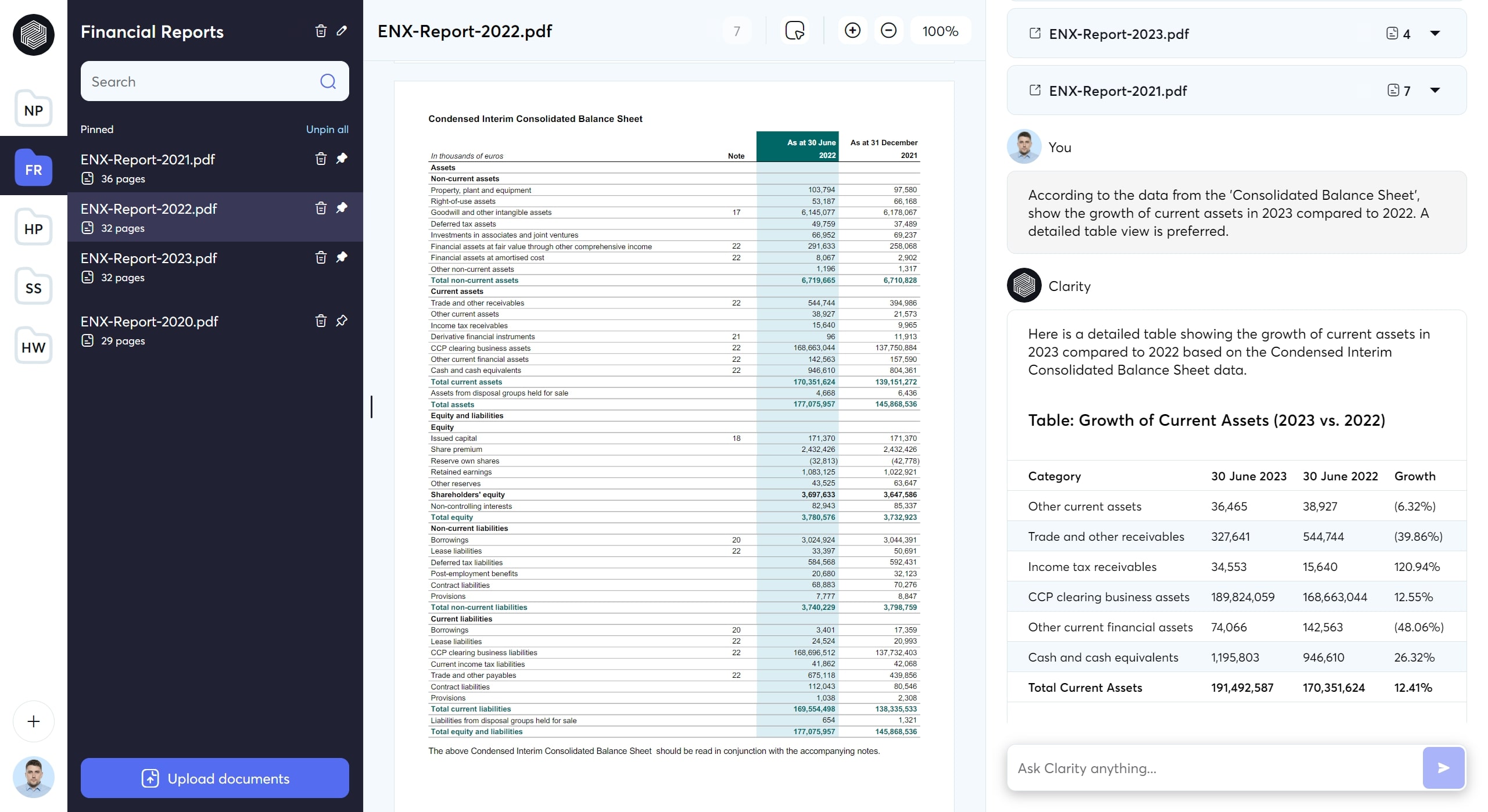 Clarity is your personal AI-powered assistant for working with documents. Talk to your documents, get instant insights, collaborate in a team.